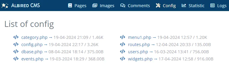Возникает вопрос — а как менять опции, ведь это работа с файлом? Да, здесь всё также просто. Есть админ-панель, которая позволяет выбрать файл, а потом его отредактировать через встроенный редактор.