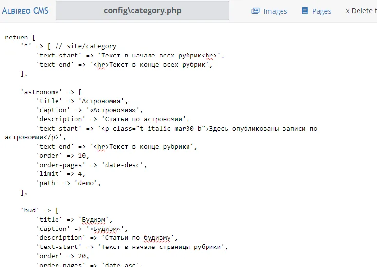 То есть фактически такой подход избавляет от необходимости создавать сложный механизм работы с опциями в админке. Может показаться, что это «некошерно», поскольку владелец сайта получает прямой доступ к php-файлу на сервере. Но в рамках истинно гибкой CMS по другому и не получится. Работать с файлом совсем несложно, при этом мы всегда держим в уме тот факт, что если пользователь боится что-то сломать, то он всегда обратится к своему вебмастеру. То есть компетентность пользователя сайта всегда будет достаточной, чтобы не ограничивать его в возможностях.