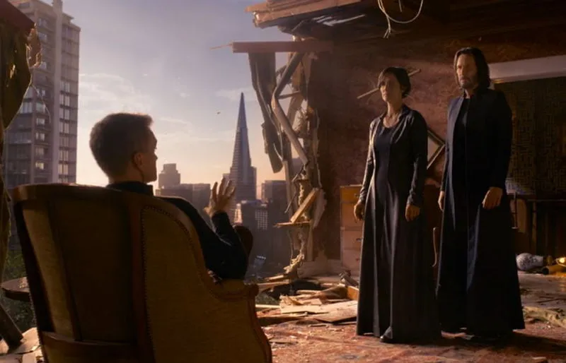 Следующая задача — показать старых и новых актёров. Согласитесь было бы здорово увидеть одновременно актёров из трилогии. Понятно, то они постарели, но при хорошем сценарии это вполне себе реализуемо (доказано Шварценеггером). Здесь же получилась непонятная смесь — очень мало старых актёров, но зато много новых молодых, которые играют роль старых. Наверное самый жуткий факап — это помолодевший и сильно похорошевший Морфиус. При этом роль у него, мягко говоря, странная. Можно было совершенно спокойно его выкинуть и переложить его слова в уста других героев — фильм бы ничего не потерял...