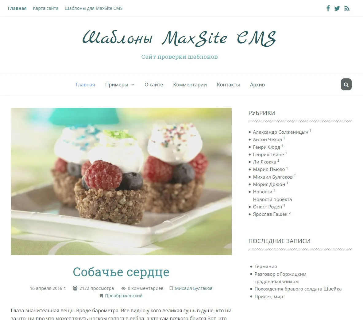 Также предусмотрены два блока для виджета any_file («Обо мне» и «Последние записи/миниатюры»).
