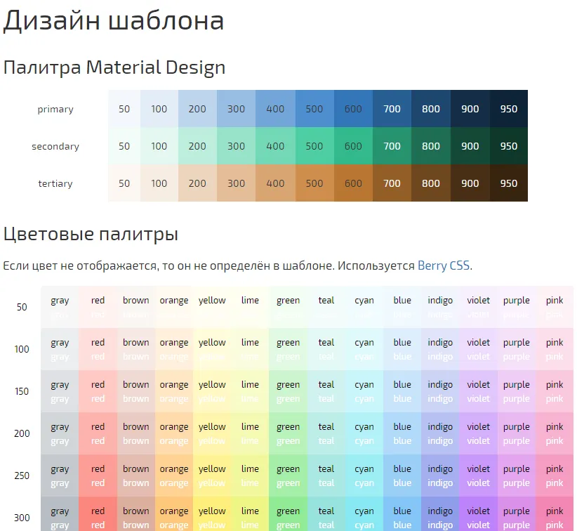 В Berry CSS палитры формируются автоматически на основе двух параметров: цветовой оттенок (hue) и насыщенности (saturation), а яркость уже строится автоматом. Это цветовая модель HSL. Поэтому все доступные палитры, будь то red, blue или primary — все они задаются именно в таком варианте.
