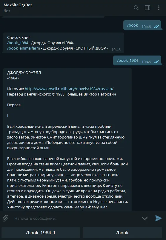 То есть в принципе боты могут выполнять самые разные задачи. Тут только полёт фантазии. :-) Например я добавил возможность читать книги прямо в телеграме.