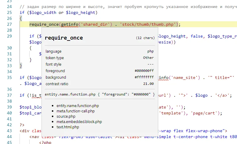 entity.name.function.php { "foreground": "#000000" }показывает какой именно элемент сейчас работает. А ниже приведена иерархия элементов:
